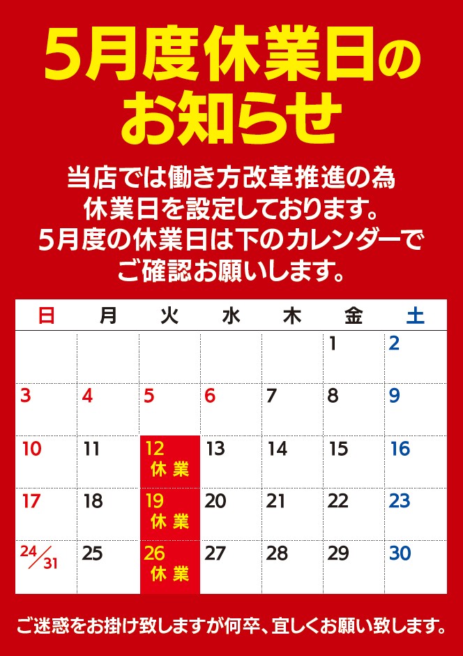 - 定休日